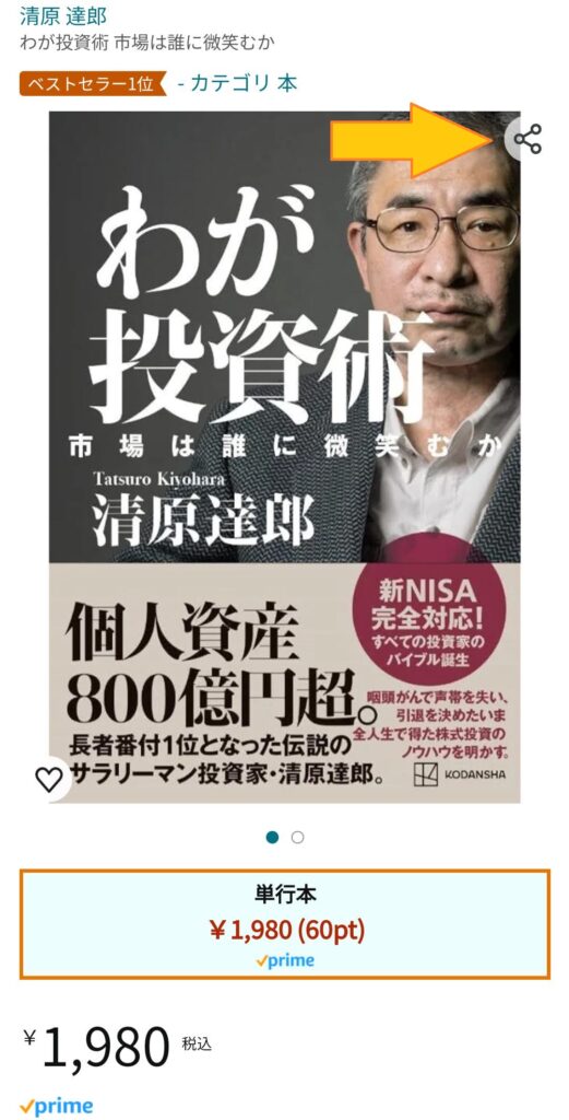 画像内のオレンジ矢印で示した共有ボタンをタップします。
