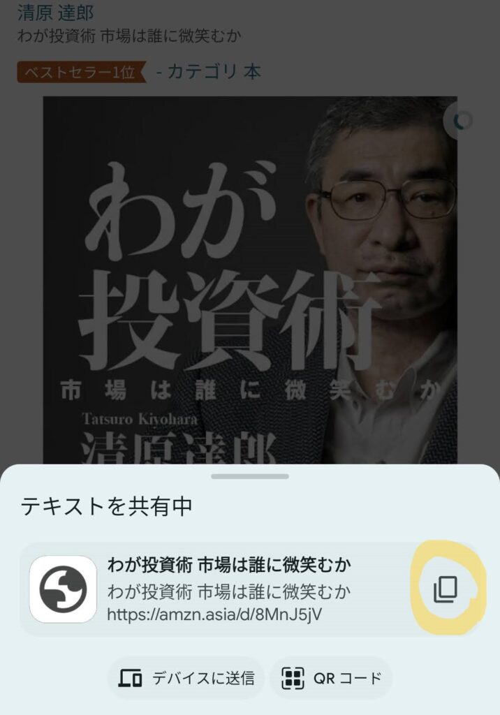 オレンジで囲ったボタンをタップします(機種によりコピーの方法は異なります)。